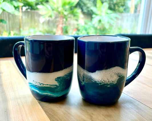 Pair of Ocean Wave Inspired Ceramic Mugs - Blue