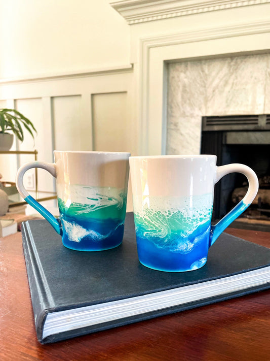 Beach Inspired Glass Tumbler with Hand Poured Resin Waves